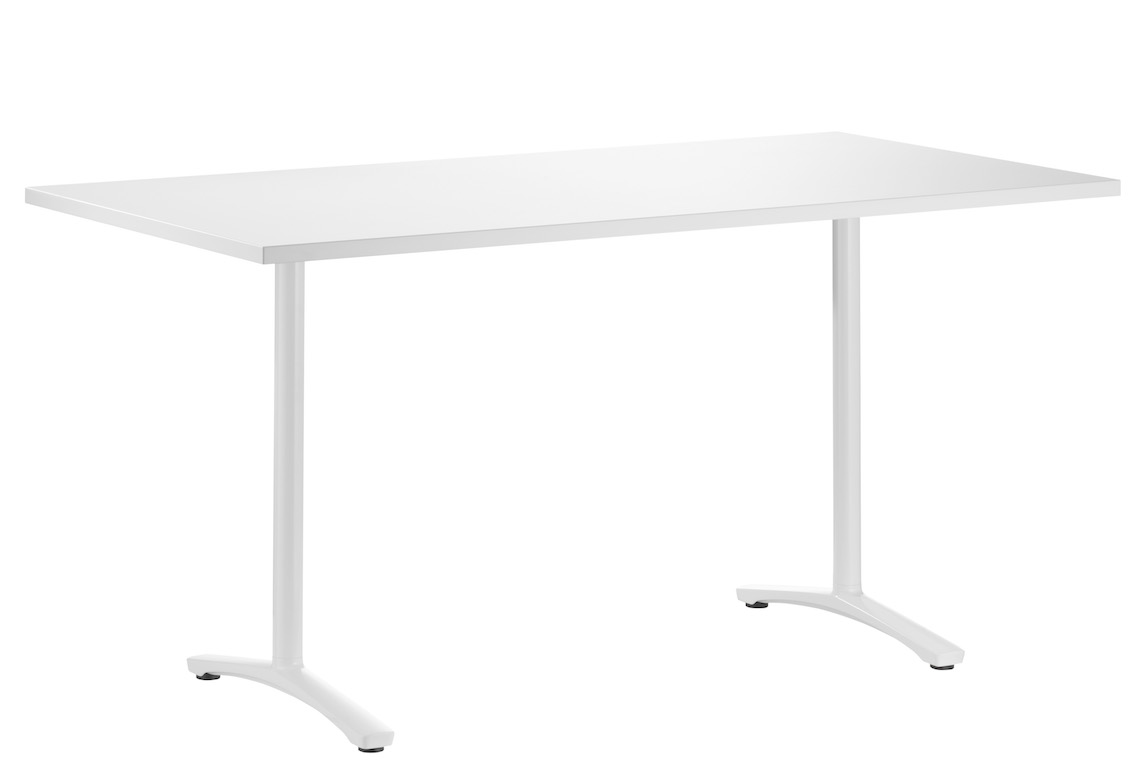 The answer was the Aline table, designed by Andreas Störiko, who was also responsible for the now-classic, legendary Confair folding table. Which is why we’ve come up with a new Aline table model that’s perfect for multipurpose use at home. The table top size of 150 cm x 75 cm is ideal and big enough as a desk and dining table for four, but small enough to fit into small spaces. With its frame of set-back slender columns, organically shaped aluminium foot sections and stable centre underframe, there’s plenty of leg room on all four sides. Therefore, it’s easy to grab hold of and move if required. To help make it simple to pick up, the new model’s core table top panels are made of composite wood and coated in white, just like the rest of the table frame. The colour lends it a fresh yet unobtrusive appearance.