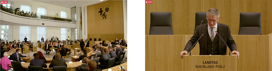 Herzkammer der Demokratie – nach rund sechs Jahren umfassender Sanierung des rheinland-pfälzischen Landtags, wurde das barocke Parlamentsgebäude in der Landeshauptstadt Mainz am 8. September 2021 parlamentarisch eröffnet. Über einen Livestream konnten die Zuschauer:innen miterleben, wie die Abgeordneten erstmals in den neugestalteten Plenarsaal zusammenkamen – zudem gab es Reden vom Landtagspräsident Hendrik Hering und Ministerpräsidentin Malu Dreyer.