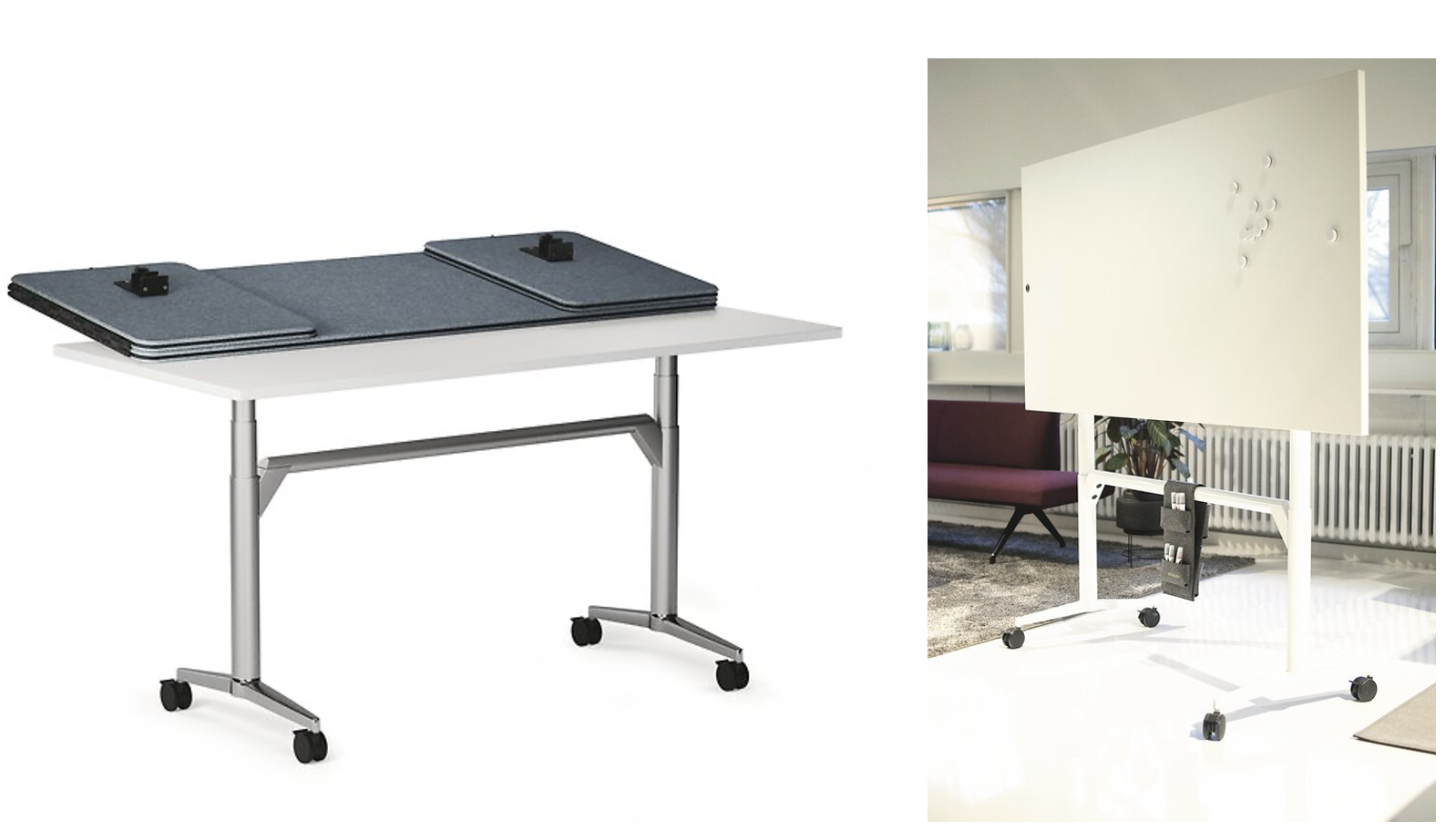 Der mobile Tisch Timetable Lift (Design: Andreas Stoeriko) punktet vor allem mit multifunktionaler Flexibilität: Die Tischplatte lässt sich mit nur einem Griff nach oben schwenken und als Whiteboard für das kreative Brainstorming nutzen. Die beiden Leichtgewichte Sitzbock (Design: RSW design studio) und Stand-Up (Design: Thorsten Franck) stehen zudem als Tools für spontane Besprechungen bereit.