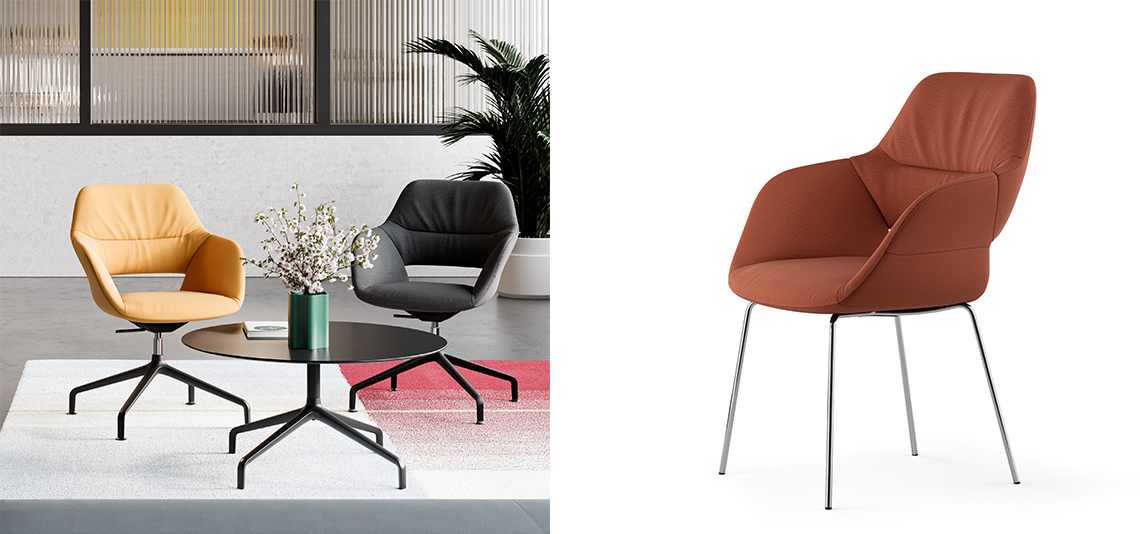 Mit einer besonders weichen Polsterung und größeren Zuschnitten der Bezüge spendierten die Designer den Sitzschalen der Modellreihe Occo Conference nicht nur ein wohliges Sitzgefühl, sondern auch einen neuen Look: Die gezielte Faltenbildung an der markanten Quernaht der Rückenlehne vermittelt einen ausgesprochen wohnlichen und informellen Charakter der neuen Polsteroption.