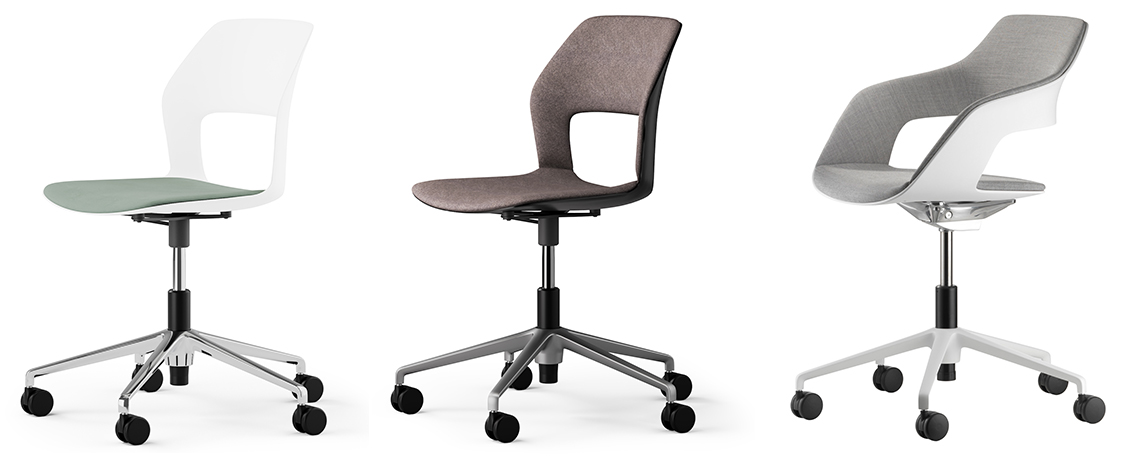 Für den wachsenden Bedarf an formschönen, höhenverstellbaren Drehstühlen im Homeoffice, an Hotdesking-Plätzen und in Co-Working-Bereichen bietet Wilkhahn auch neue Modelle der Occo-Grundvarianten an: Die geräumige Sitzschale mit den integrierten Armlehnen ist jetzt in allen sechs Farben und vier Polsterausführungen ebenso als höhenverstellbarer, einfacher Bürostuhl zu haben wie die Varianten der kompakten Sitzschale ohne Armlehnen (Occo SC). Die Auswahl der hochwertig gestalteten Aluminiumfußkreuze reicht von Oberflächenausführungen in Schwarz oder Weiß strukturmatt beschichtet über mattpoliert bis hin zu glanzverchromt.