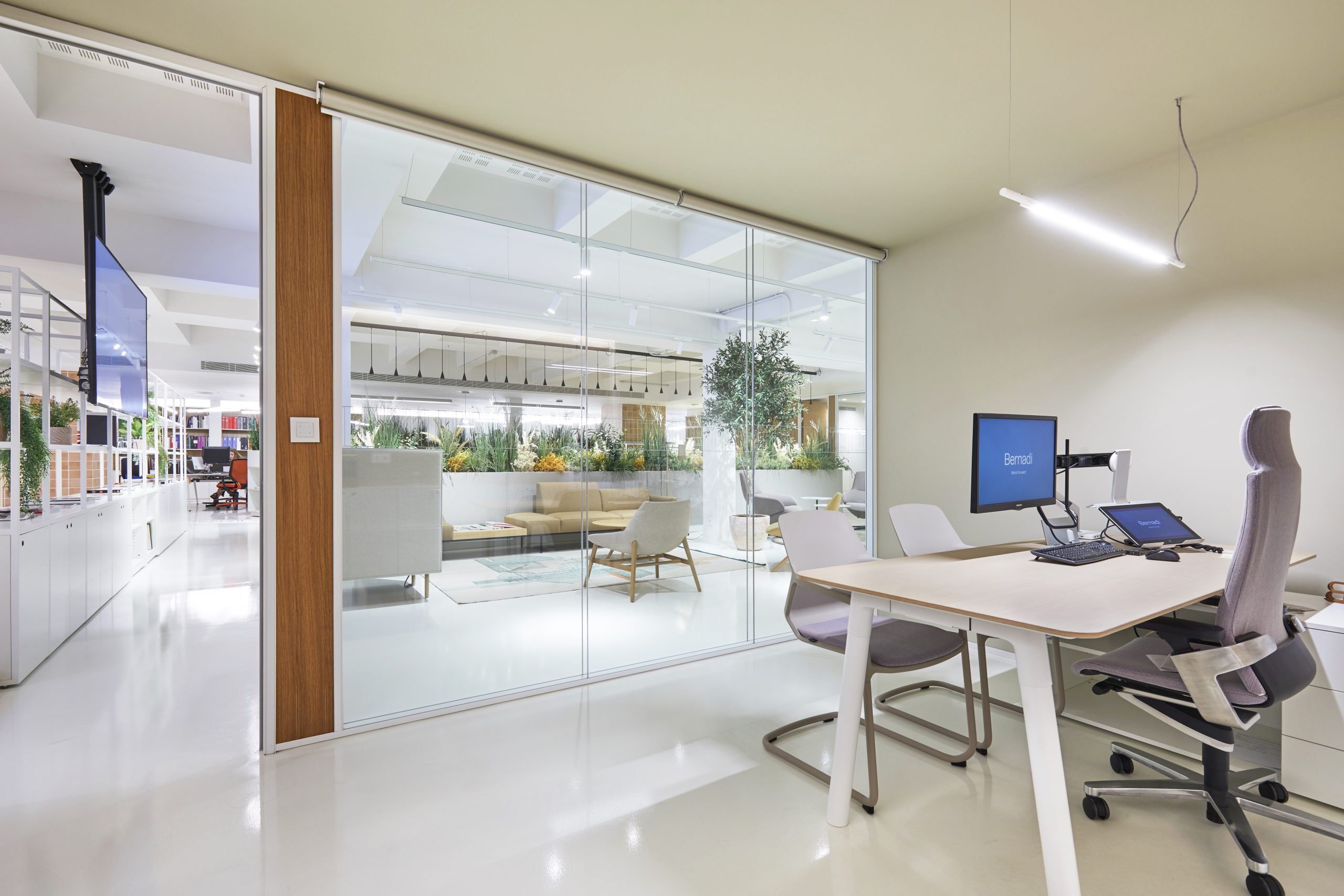 Las disciplinas que están más presentes en el nuevo espacio de Bernadí son la iluminación, la biofilia, las soluciones para conseguir una acústica idónea y confortable, y la sostenibilidad, presente en forma de tecnologías y materiales que velan por cuidar del medio ambiente.