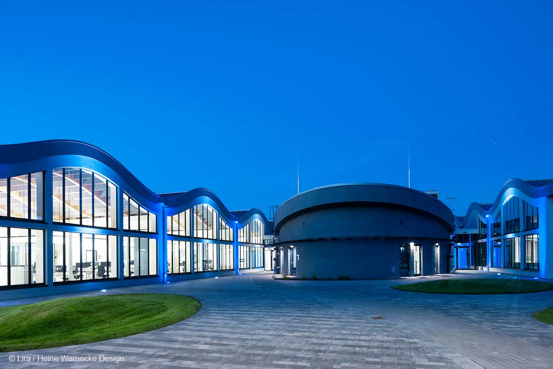 La ville de Paderborn, située en Westphalie orientale, est l’une des régions d’Allemagne les plus à la pointe des technologies de l’information, ce qu’elle doit notamment à Heinz Nixdorf, célèbre pionnier de l’informatique. De grandes entreprises informatiques sont implantées sur ce site, et illustrent bien la transition de la production industrielle à la transformation numérique. L’imbrication des deux mondes industriel et numérique se révèle aussi dans la construction d’un nouvel immeuble de bureaux, certes physiquement ancré dans la zone industrielle Almepark-Nord à la périphérie de Paderborn, mais surtout connecté au monde entier. Ferdinand and Ferdinand Architects de Budapest y a établi un campus informatique pour l’entreprise LIRA service GmbH, qui opère en tant que prestataire de services numériques interne de la société Kronospan, un producteur de matériaux en bois présent dans le monde entier.