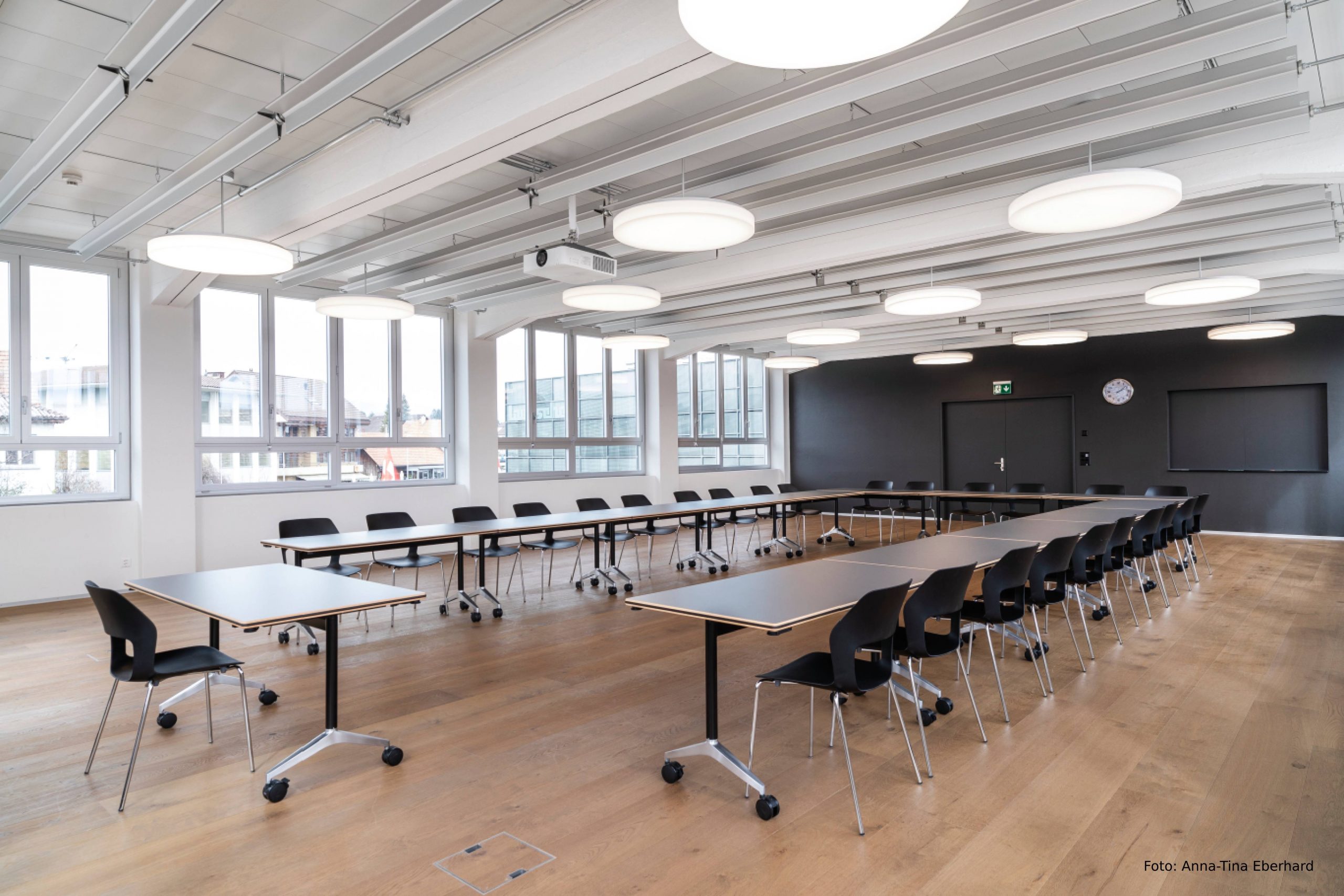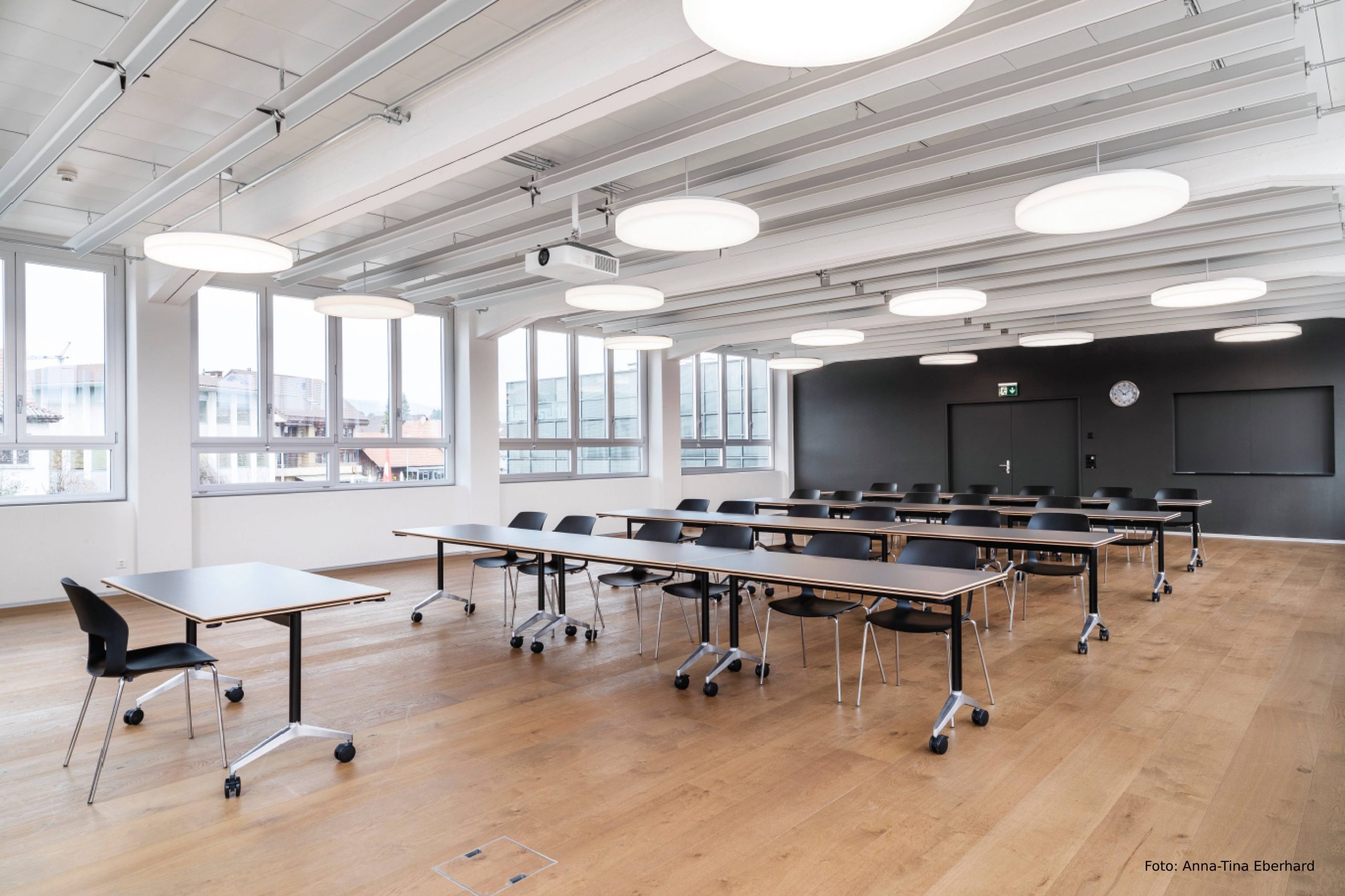 Un mobilier flexible pour différentes utilisations : en combinant les chaises Occo empilables et les tables Timetable mobiles, il est possible de réaliser des configurations adaptées aux réunions ou aux formations continues en groupe élargi, en fonction des besoins. Photos : Anna-Tina Eberhard