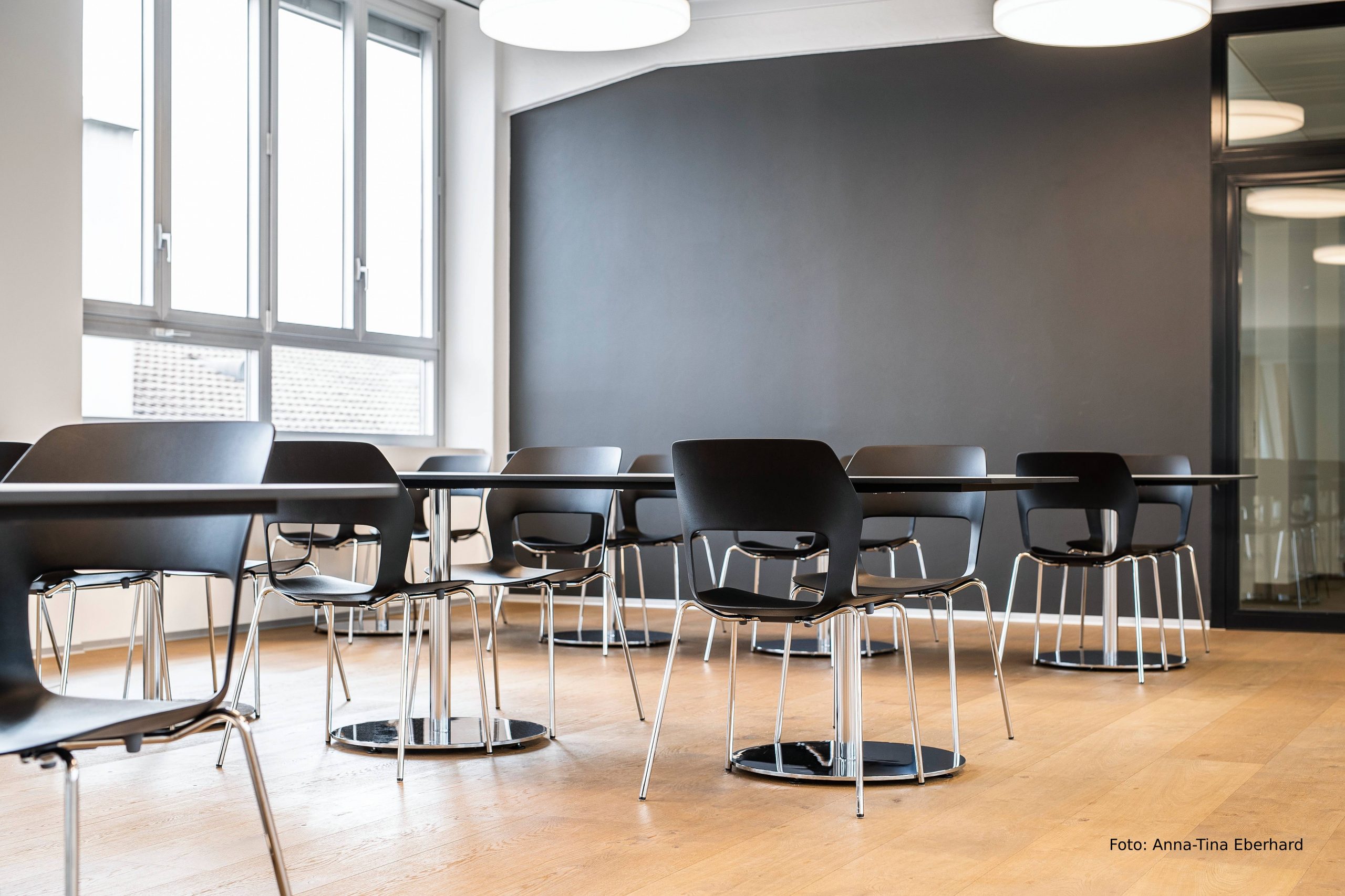 Le choix s’est finalement porté sur deux modèles de la chaise universelle Occo de Jehs + Laub, la chaise de conférence Modus de Klaus Franck et Werner Sauer et la table Timetable d’Andreas Störiko. La cafétéria et l’espace multifonctionnel ont été aménagés avec des chaises Occo SC à piètement métallique et sans rembourrage, car elles sont particulièrement légères, faciles à empiler et lavables. Grâce aux tables Timetable mobiles avec des plateaux de table pivotant verticalement, les locaux deviennent flexibles et peuvent être réaménagés à tout moment selon les besoins. En effet, grâce au mécanisme de pivotement robuste, les tables sont faciles à utiliser et en outre très résistantes.