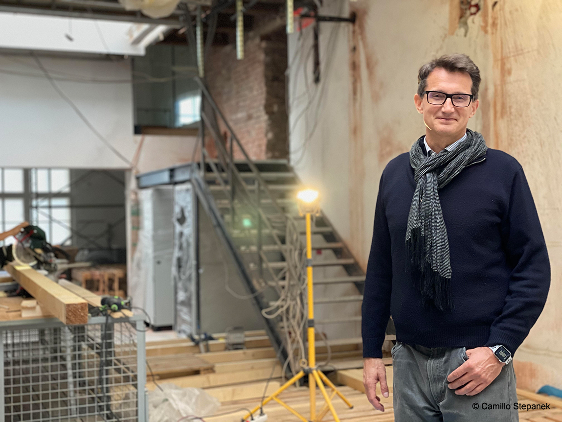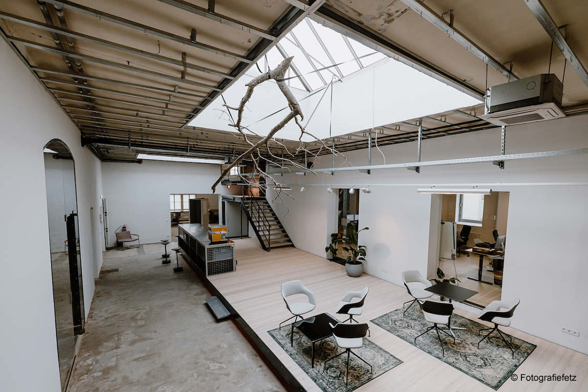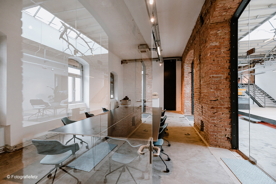 C’est là que Paul Blazek, entrepreneur, fondateur, professeur d’université et chercheur en innovation, a fait l’acquisition du deuxième étage de l’immeuble situé au 27 Absberggasse, réserve d’aménagement comprise, afin d’y transformer l’ancienne usines de produits de boulangerie en une « Co-Innovation Factory ». Le bâtiment, qui porte l’inscription distinctive de l’usine Ankerbrot, sert en quelque sorte de porte d’entrée à la nouvelle zone culturelle. En étroite collaboration avec l’architecte, artiste et designer Claus Schnetzer, les locaux ont été transformés en un lieu qui répond en quasi-totalité aux critères d’un environnement de travail orienté vers l’avenir dans une économie de plus en plus basée sur le savoir : adaptabilité, flexibilité et durabilité.