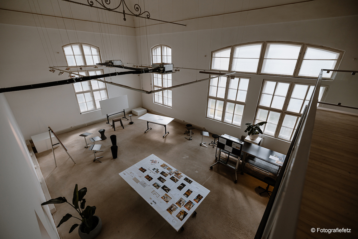 La réorganisation et la densification de l’usine de fabrication de produits de boulangerie en tant qu’usine de savoir sont des composantes essentielles d’une construction durable sur le plan matériel et culturel. La durabilité et le changement sont également à la base du concept d’aménagement. Les différentes couches de l’histoire du bâtiment ont été délicatement mises à nu et conservées. L’ameublement a également été réalisé à l’aide de luminaires et de tables provenant des bureaux désaffectés. Les caisses de transport grillagées trouvées sur place sont aujourd’hui disposées en un comptoir de bar qui peut être configuré avec flexibilité.