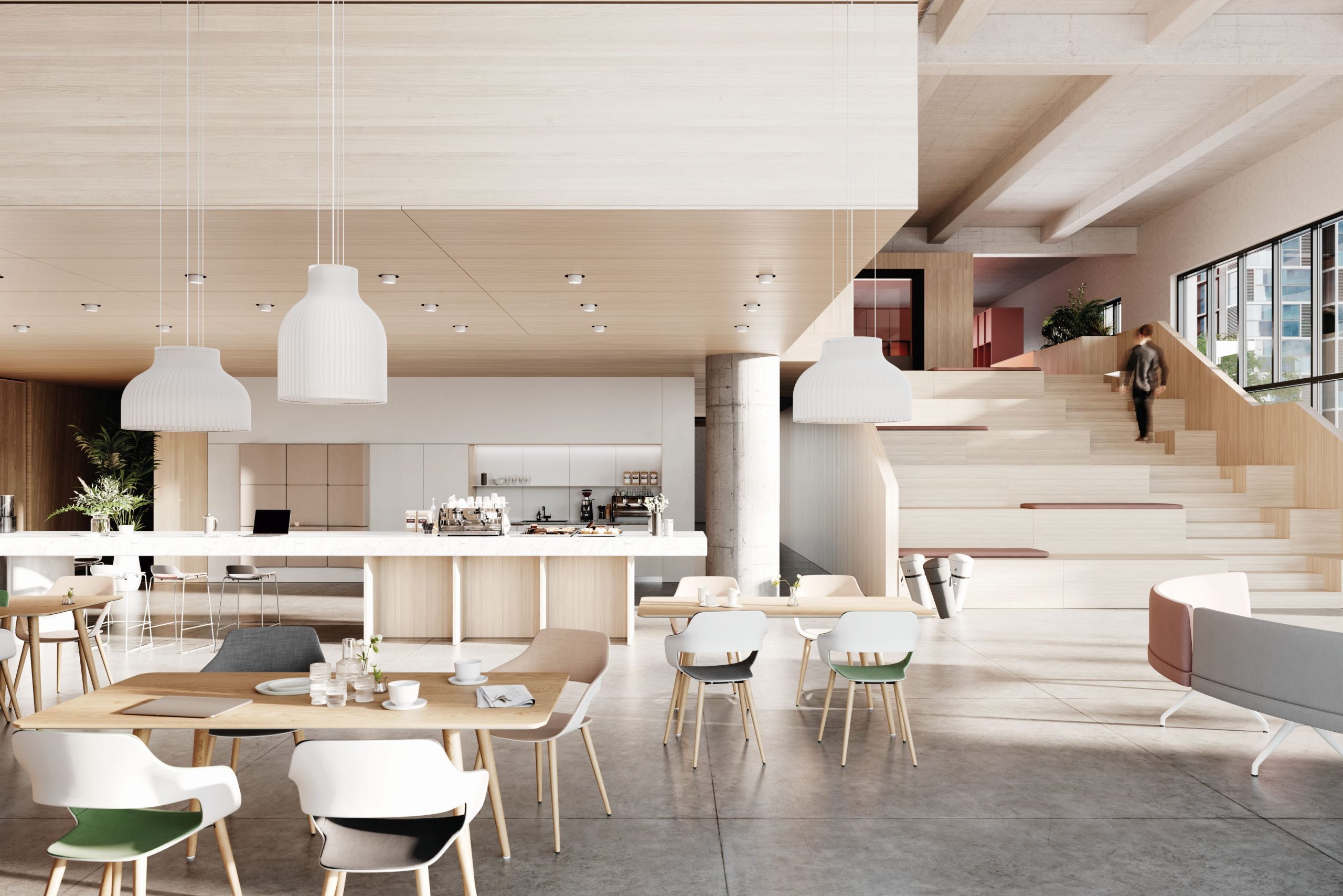 A company restaurant is a communal hub across departments and disciplines. Eating and drinking brings people closer together, particularly when Occo chairs and tables make no distinction between hierarchies.