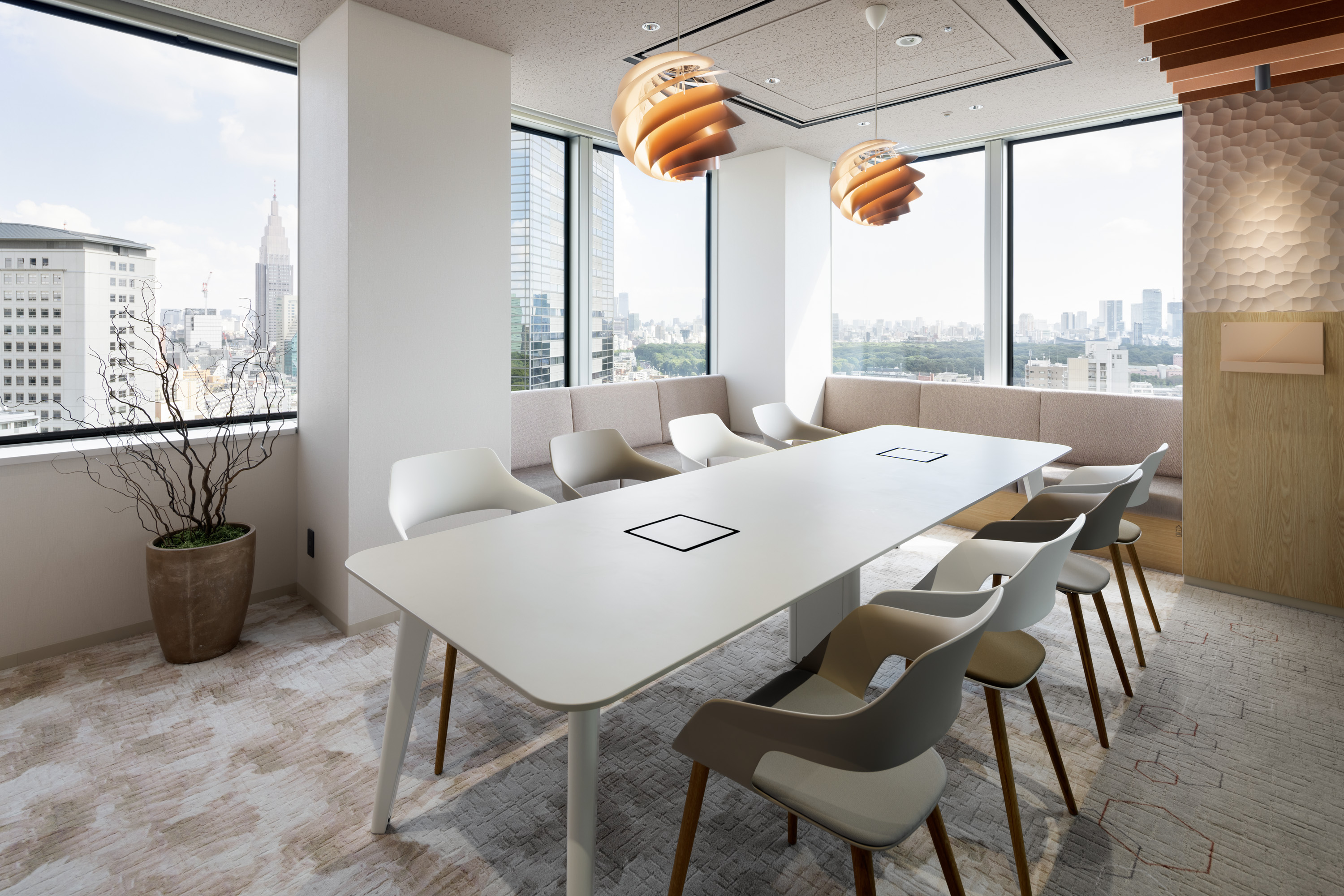 The Shinjuku Park Tower, whose unique shape consists of three skyscrapers in a row, is structurally divided by the many fire doors on the office floors. This hinders communication between employees. We followed our idea of “letting a nice breeze blow from one end to the other” and planned the entire floor so that all areas are seamlessly connected instead of separating the individual business areas.