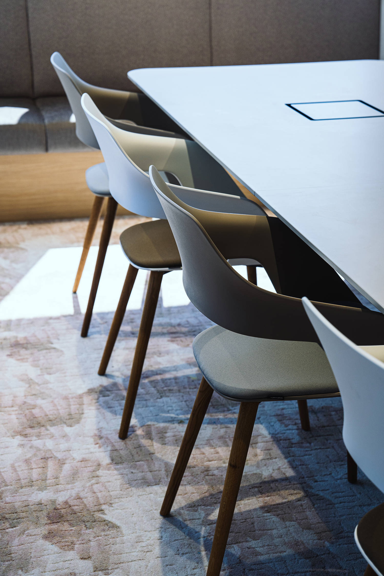 Wilkhahn seating plays an important role in this, inviting informal interaction in the break zones, project and conference rooms and supporting analog and hybrid forms of collaboration. The Occo chair range , designed by Stuttgart-based design duo Jehs + Laub, and the Sola conference chair in various versions blend harmoniously into the overall aesthetic concept, which takes the “beauty of Japan” as its leitmotif.