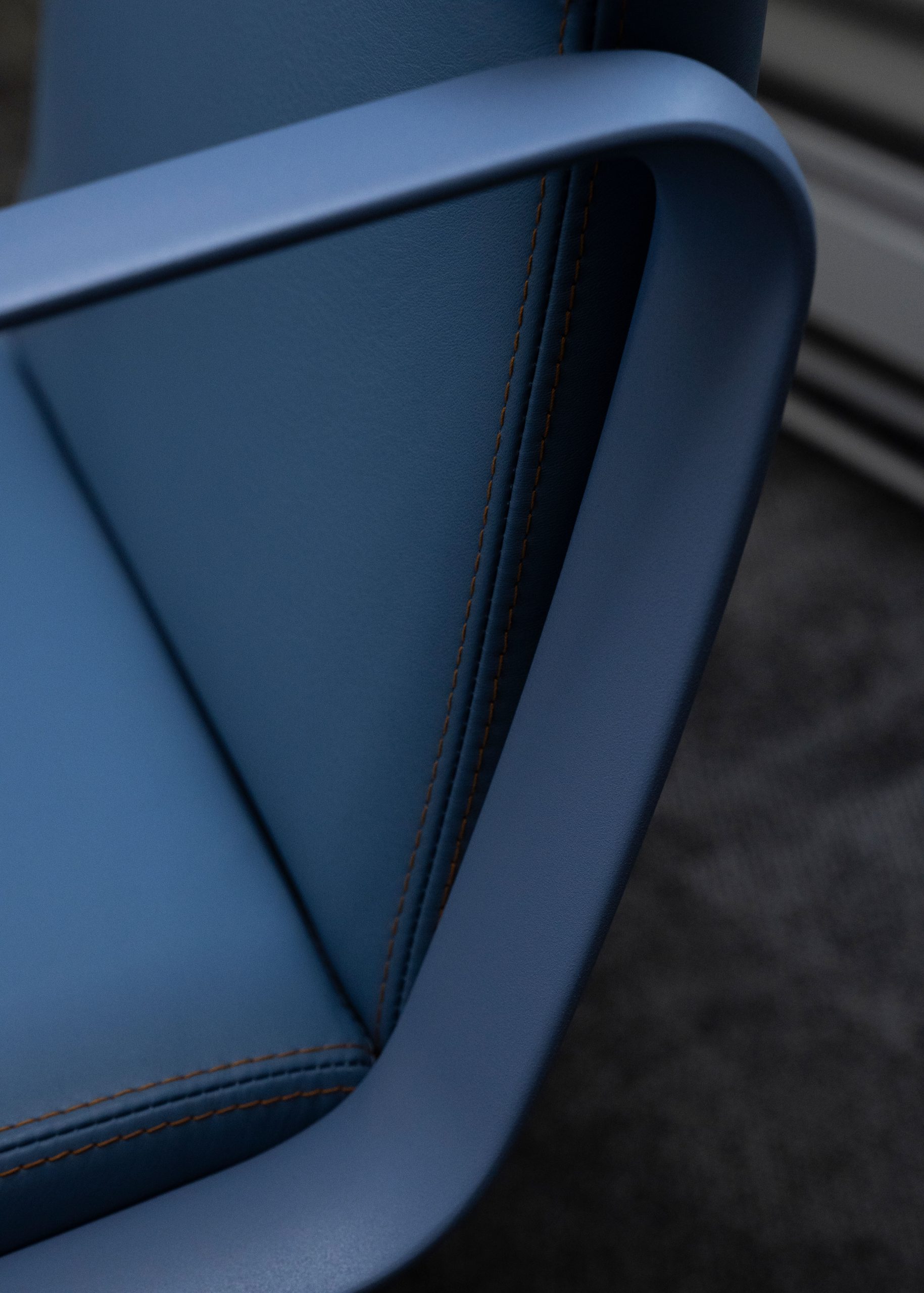 The design of the Intra conference chair counters this social reality. PHOENIX translated the concept of a high-quality conference chair from a traditional and prestigious to a modern and dynamic design language. Intra was developed with the user in mind and therefore has an innovative mechanism that synchronously adjusts the seat and backrest angle to the user’s movements, automatically taking into account individual weight and posture. In this way, Intra embodies a modern understanding of leadership culture in which all have equal space.