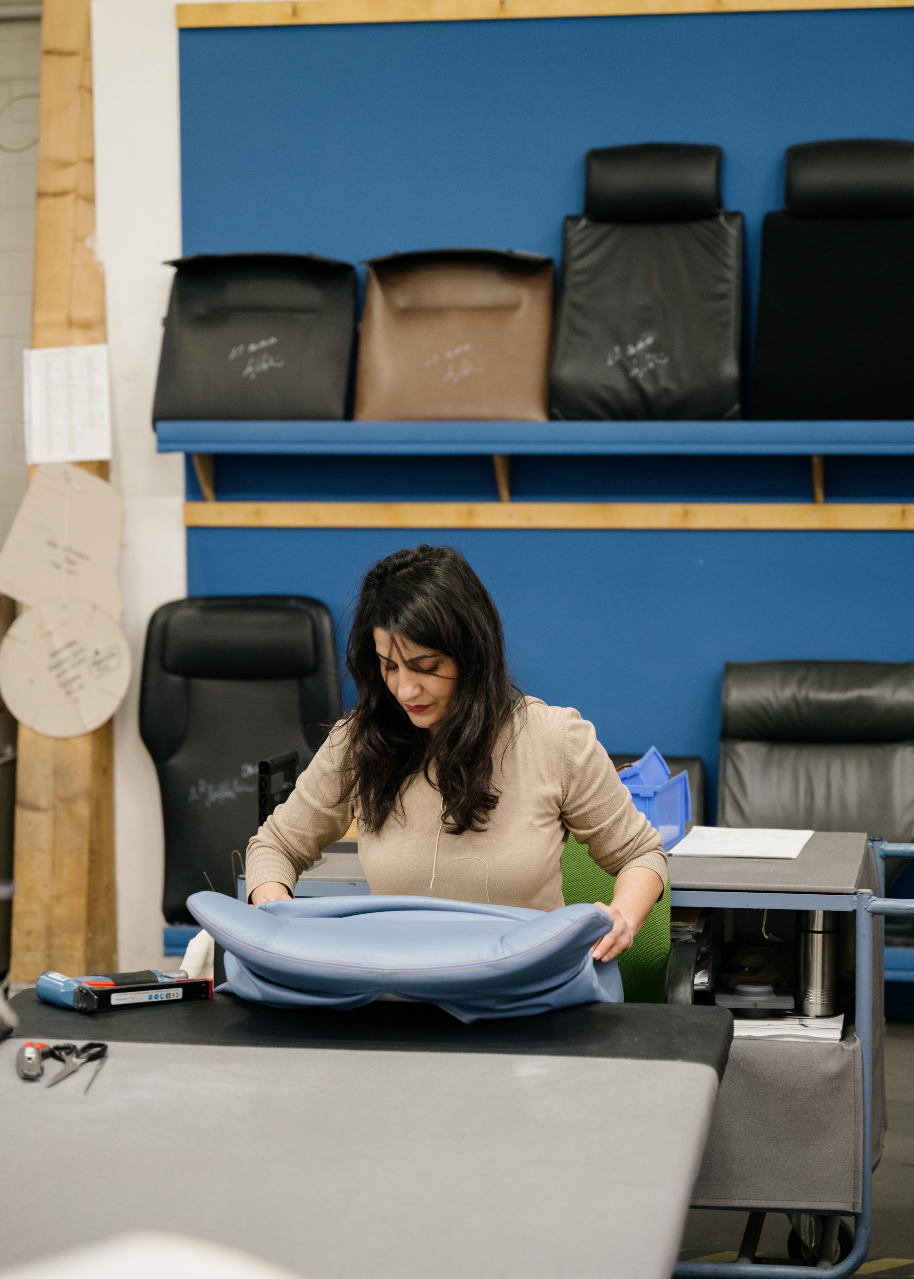 Fatma Bayrak is an upholsterer at Wilkhahn and knows her trade. Photo: Ludwig Schoepfer/StudioTusch