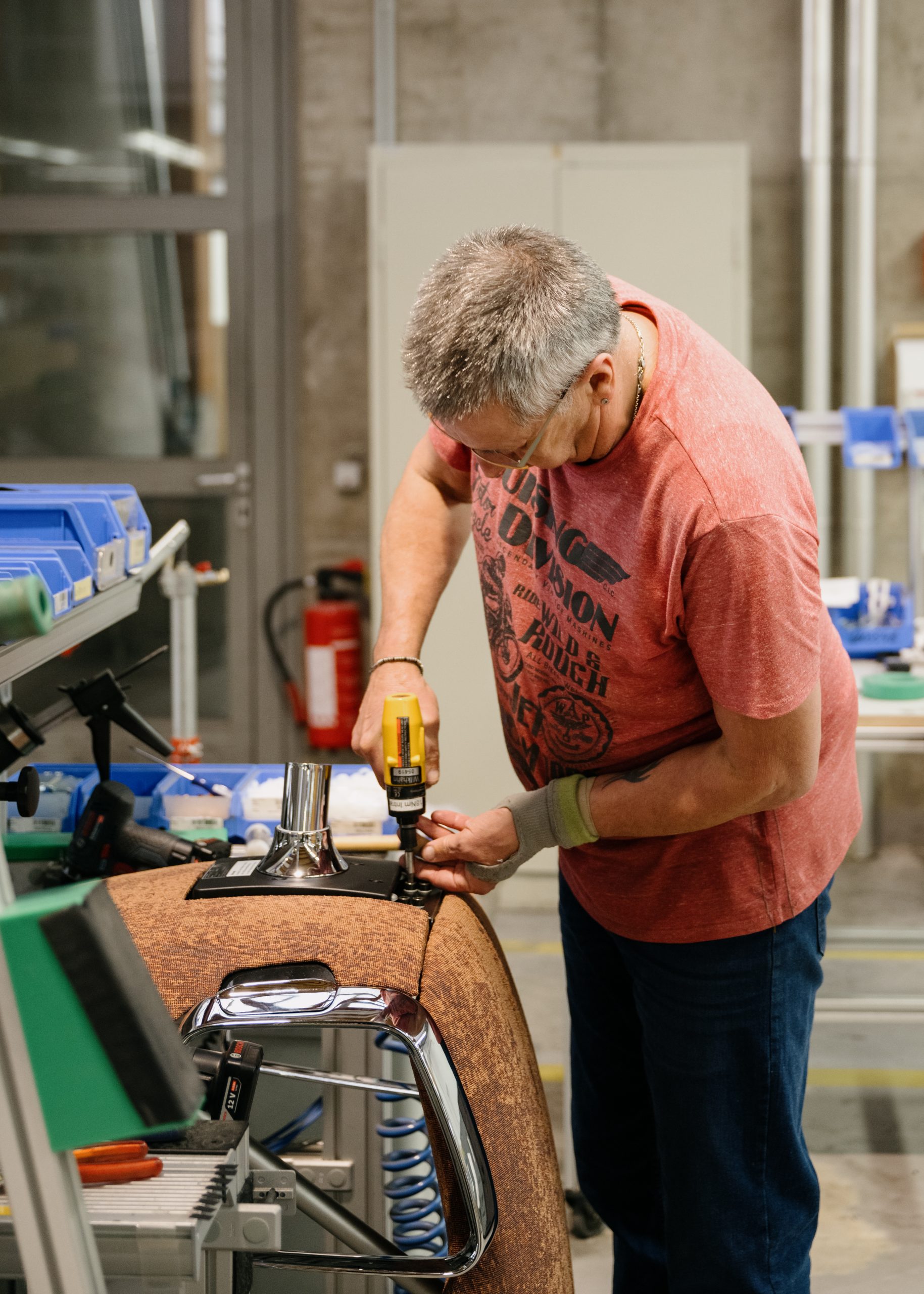 • Once the order is placed, almost everything runs like a standard product. The special order is transmitted precisely to the production department via the system, the special materials that have already been checked are ordered and production starts in the usual process. Cutting, sewing, upholstery and assembly – everything is done with the utmost precision and care. With their extensive knowledge and enthusiasm for the product, our Wilkhahn team ensures that the order is completed to the customer’s complete satisfaction at every stage of the process.